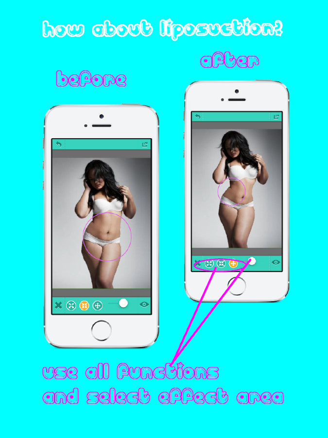 “Have you thought of what you may look like with a breast or buttock lift? Let this app be your virtual guide to see what you would look like with that desired cosmetic surgery operation before contacting an aesthetic surgeon.”